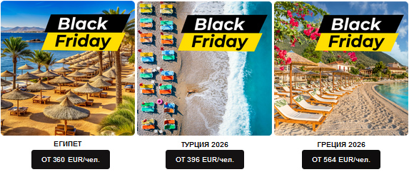 Предложения «Чёрной пятницы» уже доступны, и акция продлится дольше!🖤️💛 Уже сегодня туристические пакеты дешевле до 250 € на человека!